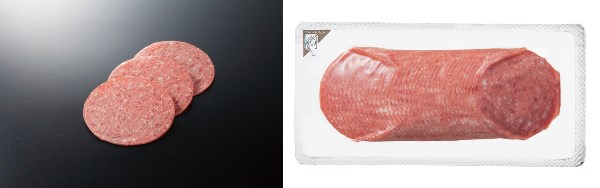 ■原材料:豚肉、豚脂肪、食塩、砂糖、香辛料、たん白加水分解物、酵母エキス/加工デンプン、結晶セルロース、調味料(アミノ酸等)、酸化防止剤(V.C、V.E)、くん液、着色料(コチニール)、発色剤(亜硝酸Na)、(一部に乳成分、大豆、豚肉を含む)